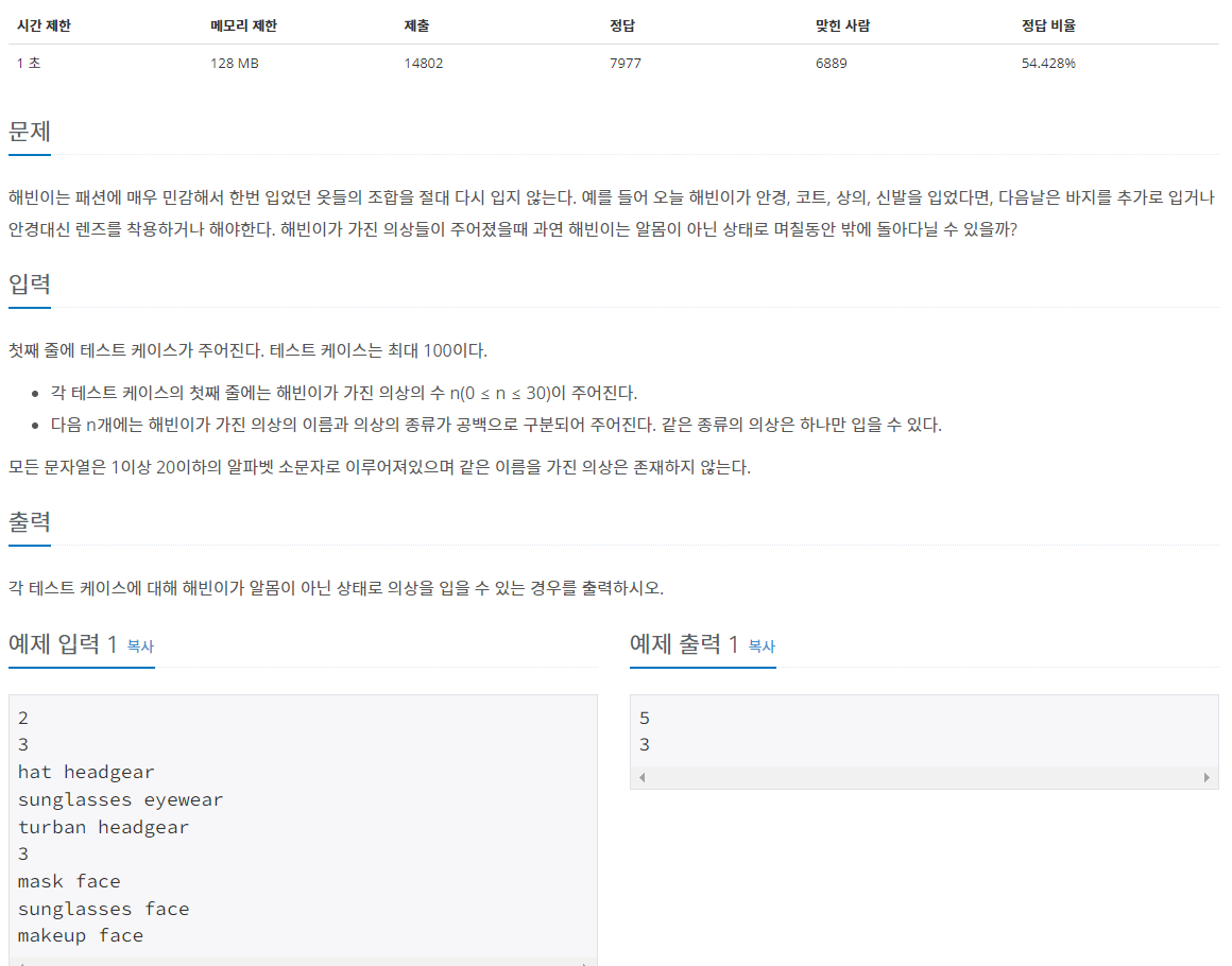 # (옷 종류 수 + 1) * (옷 종류 수 + 1) - 1