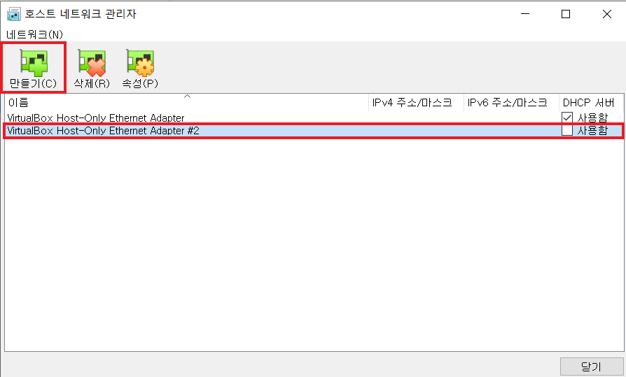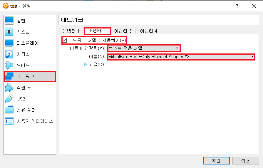 - 호스트 전용 어댑터 선택