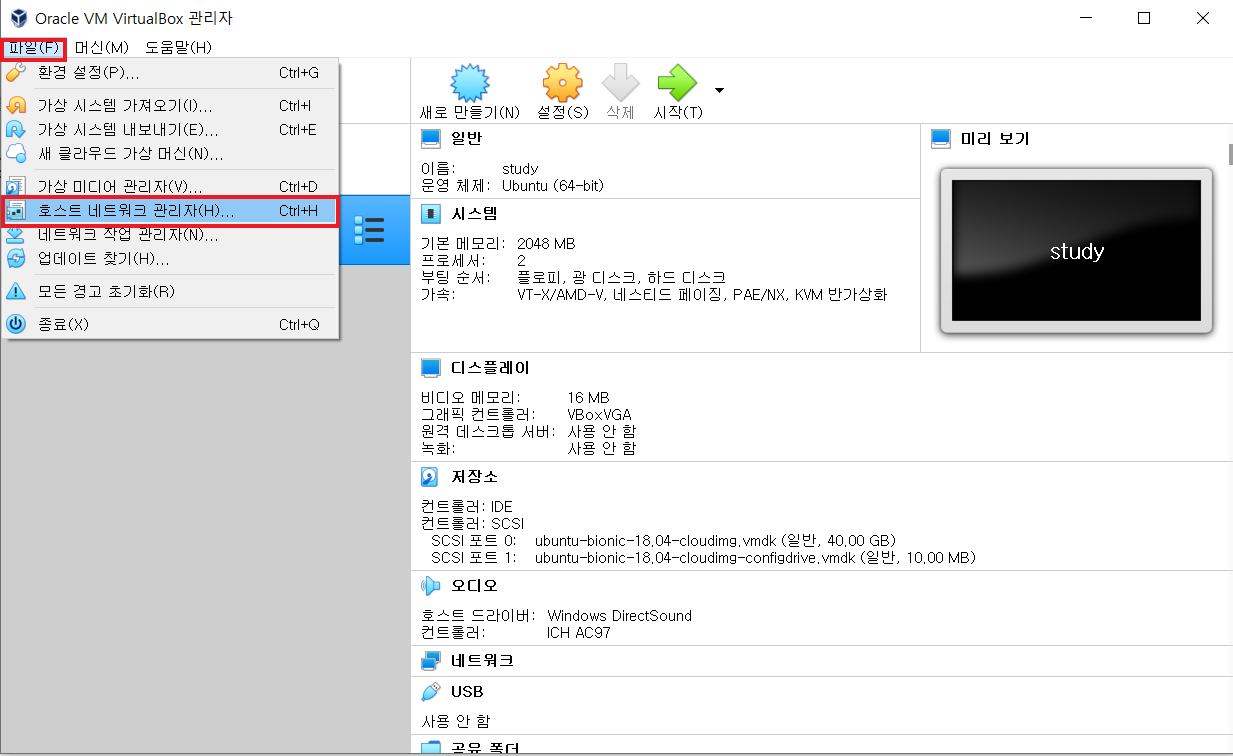 가상 머신 실행 후