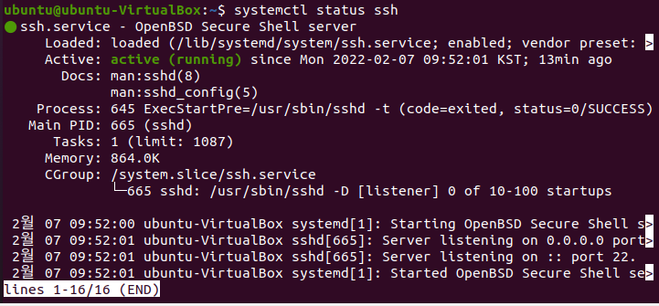 ssh 동작 확인
