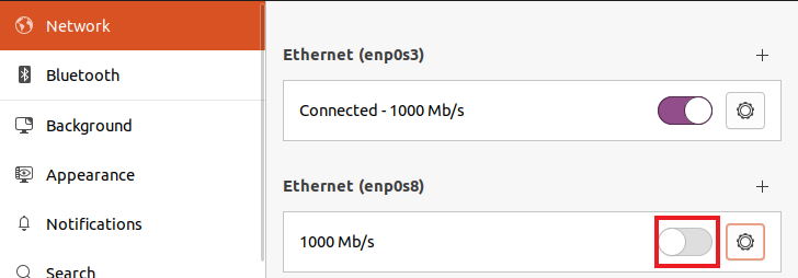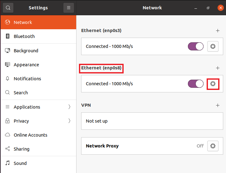 enp0s8의 톱니바퀴 클릭